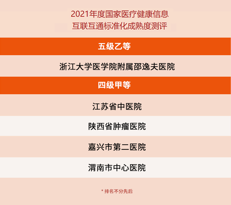 為促進健康中國建設(shè),落實衛(wèi)生健康信息化工作要求。近期,國家衛(wèi)生健康委統(tǒng)計信息中心開展了2021年度國家醫(yī)療健康信息互聯(lián)互通標準化成熟度測評工作。由和仁科技服務(wù)支持的多家醫(yī)院通過國家醫(yī)療健康信息互聯(lián)互通標準化成熟度測評,其中,浙江大學(xué)醫(yī)學(xué)院附屬邵逸夫醫(yī)院成功獲評五級乙等,江蘇省中醫(yī)院、陜西省腫瘤醫(yī)院、嘉興市第二醫(yī)院、渭南市中心醫(yī)院順利通過四級甲等評測。在此,我們表示熱烈祝賀!